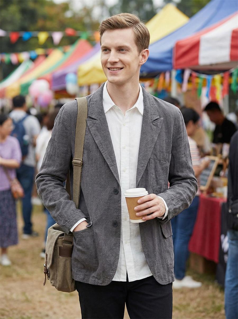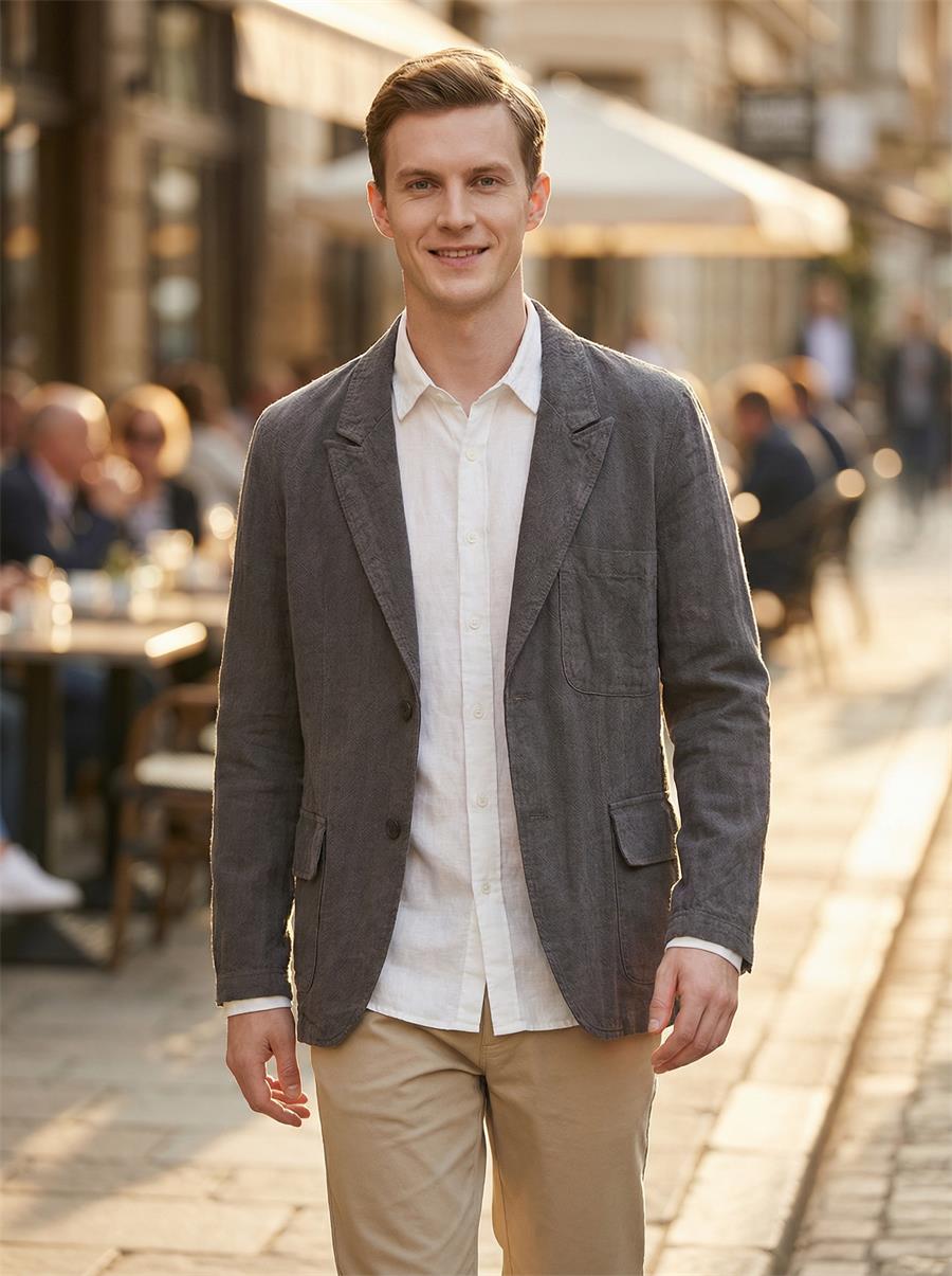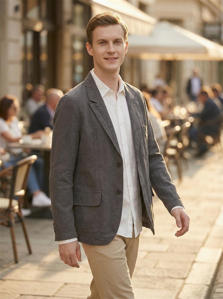 This Men’s Stonewash Linen Blazer brings relaxed, breathable style to your casual wardrobe. Made with 95% linen, it keeps you cool in spring and fall. The loose fit, notched lapel, two – button front, and multiple patch pockets add practicality and laid – back charm. Perfect for casual outings, it features a center – back vent and round hem for easy movement. Choose from colors like black, dark gray, navy, lavender, sky blue, army green, or coffee to match your vibe.