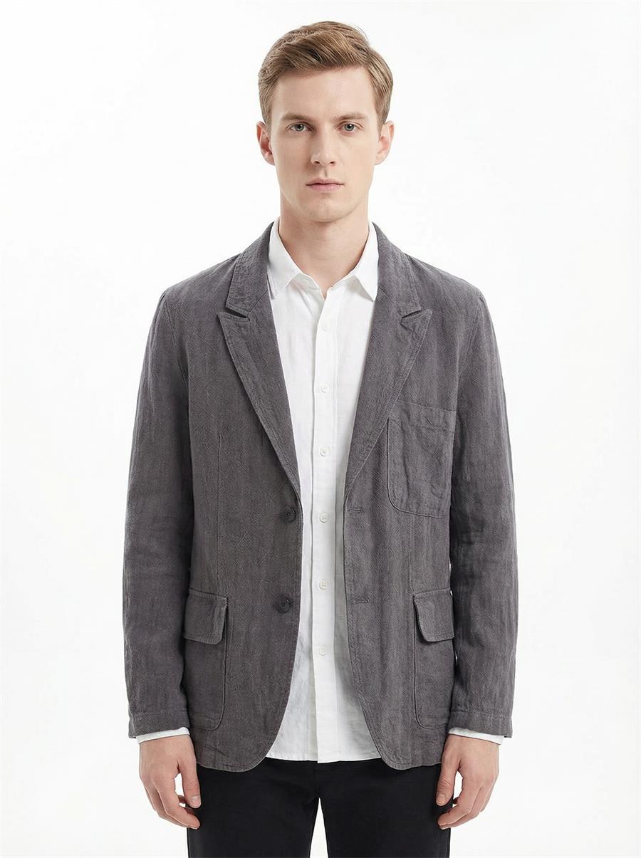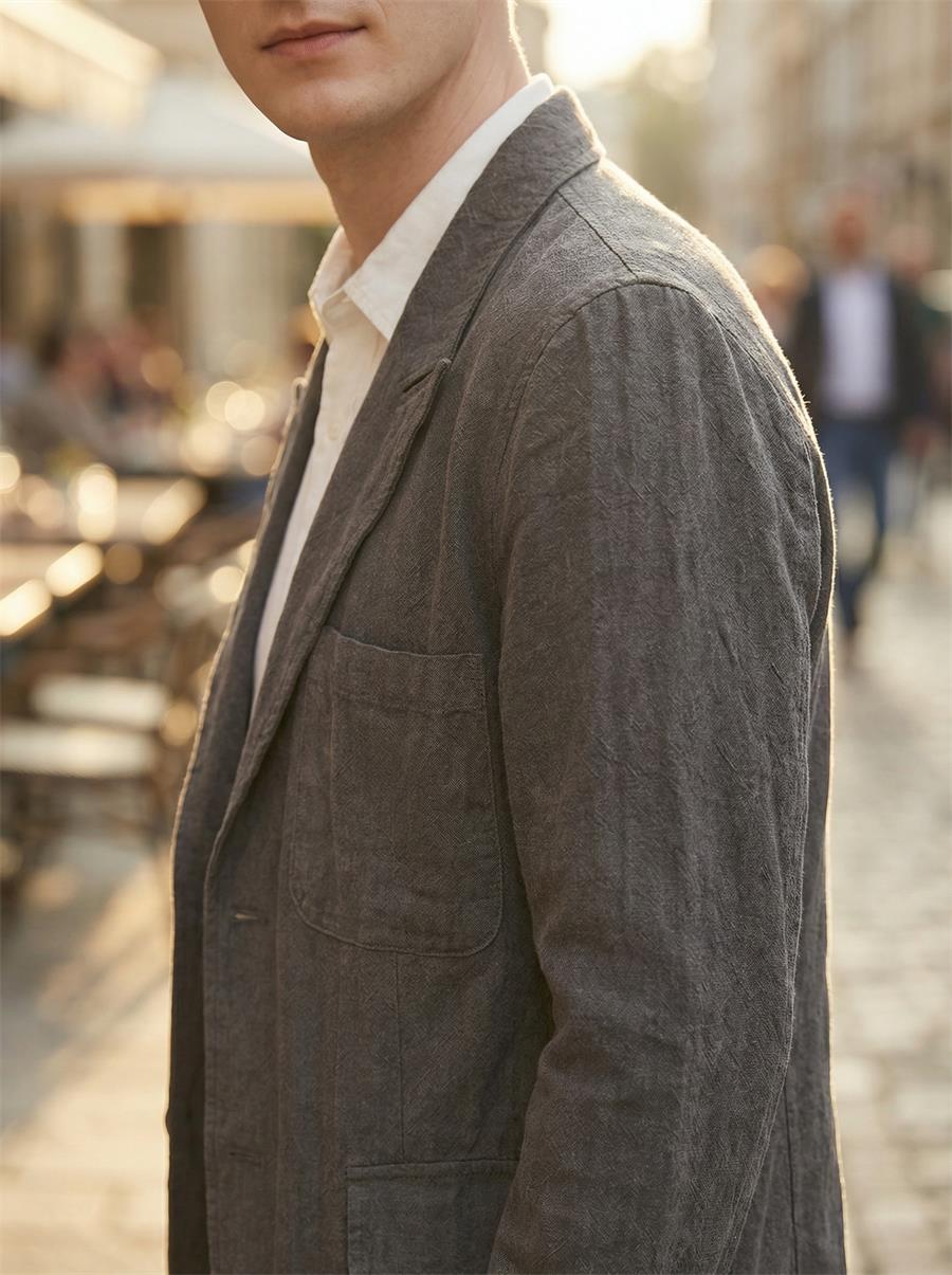Mens Stonewash Linen Blazer Breathable Relaxed Multi Pocket Casual